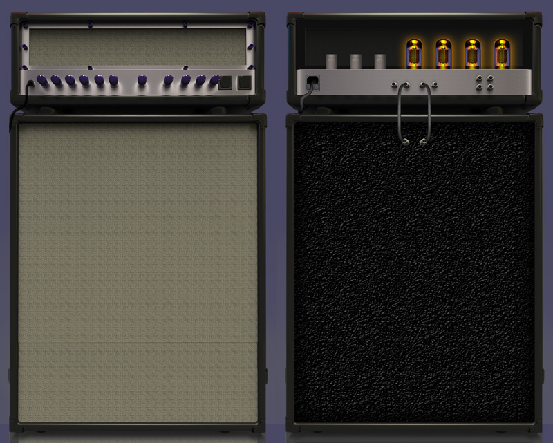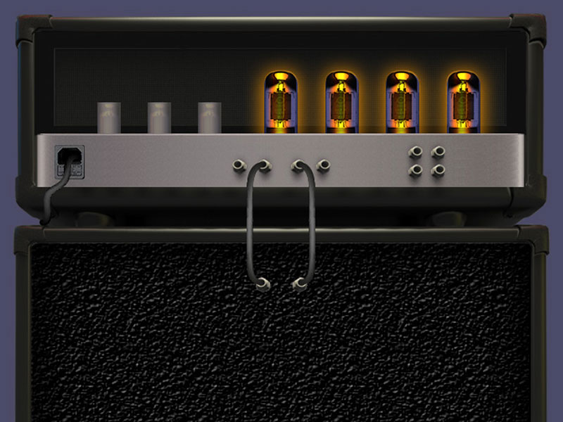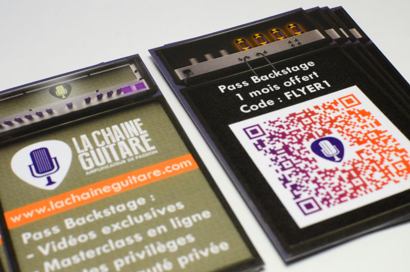 Reconstitution graphique de la face arrière d’un amplificateur de guitare, pour le site La Chaîne Guitare, afin d’être utilisé sur des cartes promotionnelles.
